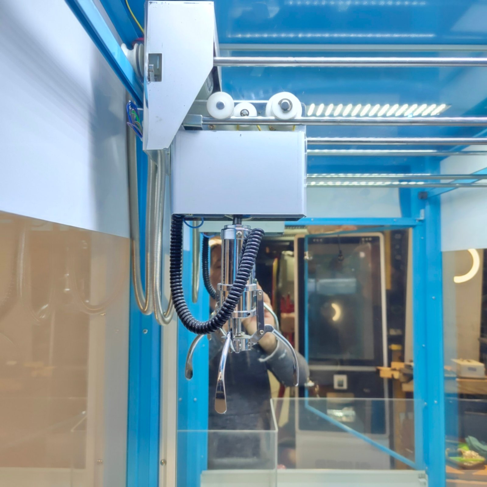 La machine est dotée d’une porte d’accès amovible, par laquelle on peut accéder au tiroir du PCB, ce qui permet un accès et un entretien pratiques. La possibilité d’effectuer des réglages numériques du jeu et du système, tels que la force de la griffe et le ratio de gain, à l’aide du panneau de commande, est également très pratique.